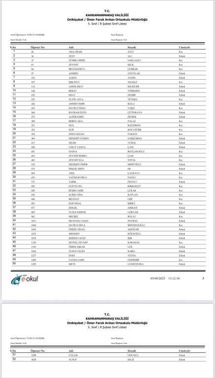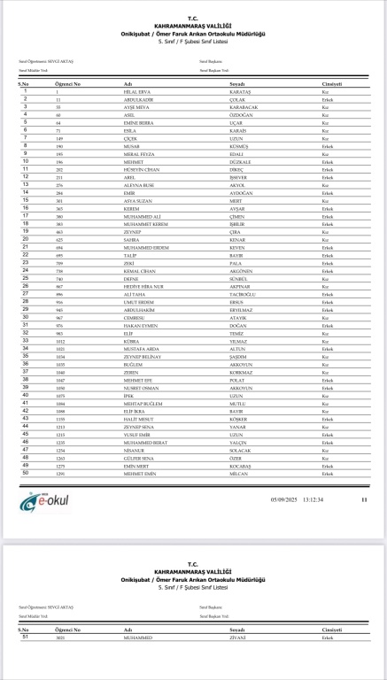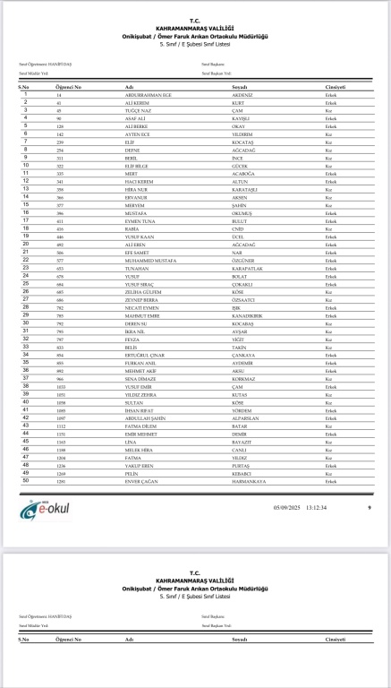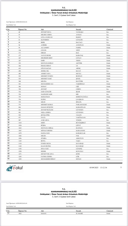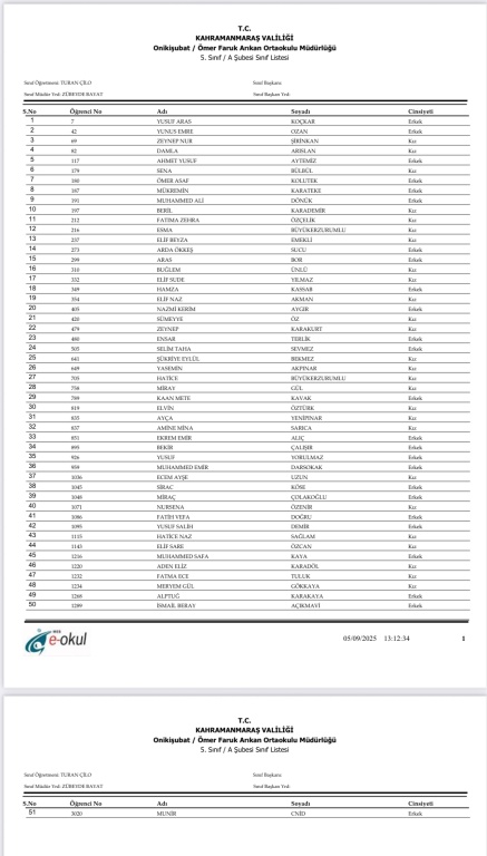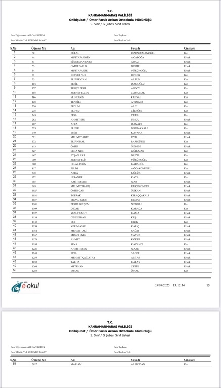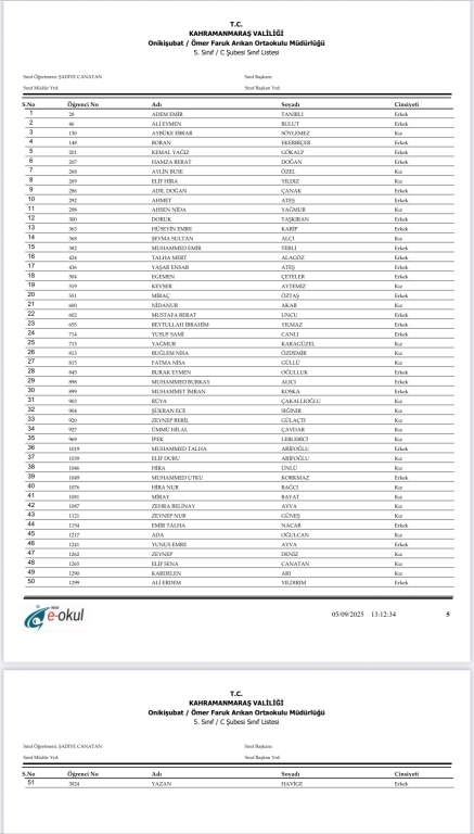 5. SINIF LİSTELERİ YAYINLANMIŞTIR